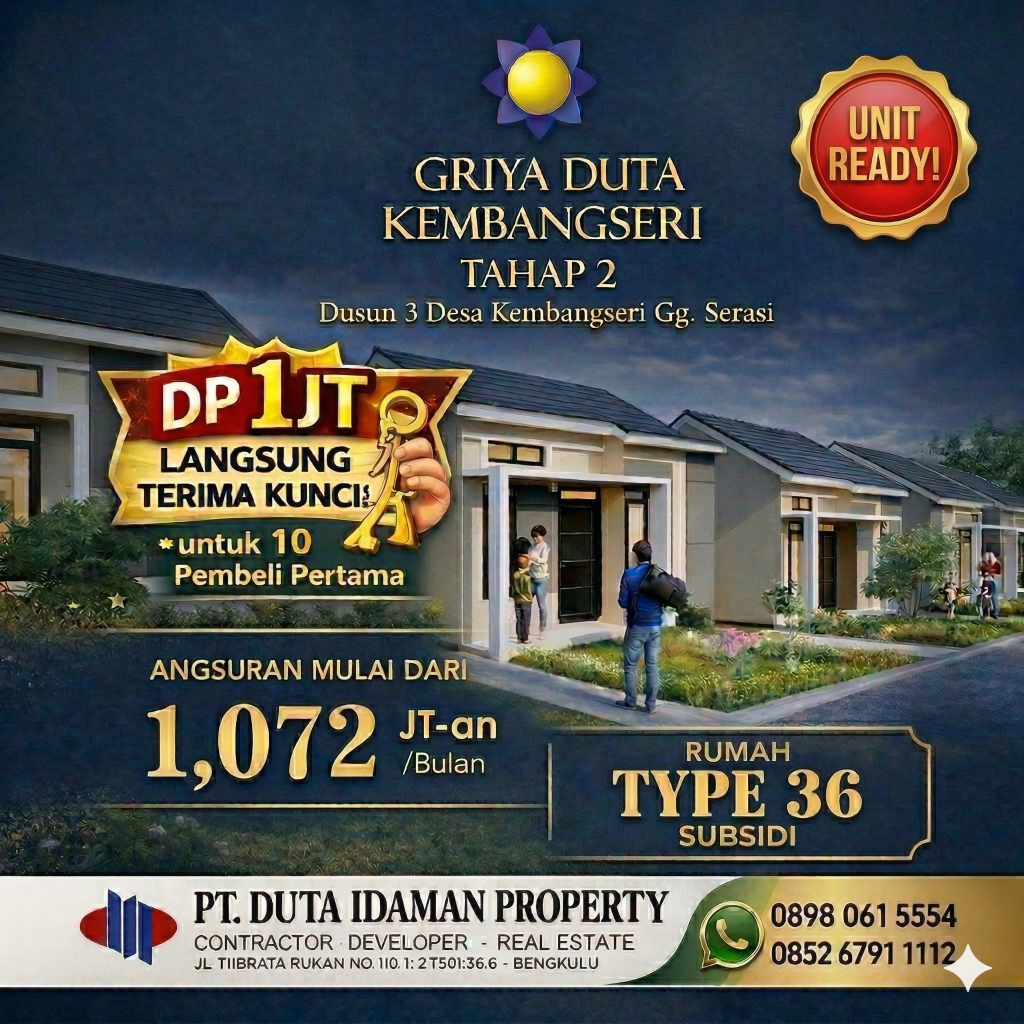RumahSubsidiBengkulu #GriyaDutaKembangseri #RumahMurah #InvestasiProperti #Cukup1Juta #RumahReadyStock #rumahsubsidibengkulu #rumahmurahbengkulu #huniannyamanbengkulu #rumahsubsidirasakomersil #rumahsubsidirasakomersilbengkulu #bengkuluhits #rumahbengkulu #perumahansubsidibengkulu #griyadutakembangseritahap2 #PerumahanGriyaDutaKembangSeriTahap2 #GriyaDutaKembangSeriTahap2Bengkulu #HunianBengkulu #JualRumahBengkulu #griyadutakembangseri2 #PerumahanGriyaDutaKembangSeri2 #GriyaDutaKembangSeri2Bengkulu
